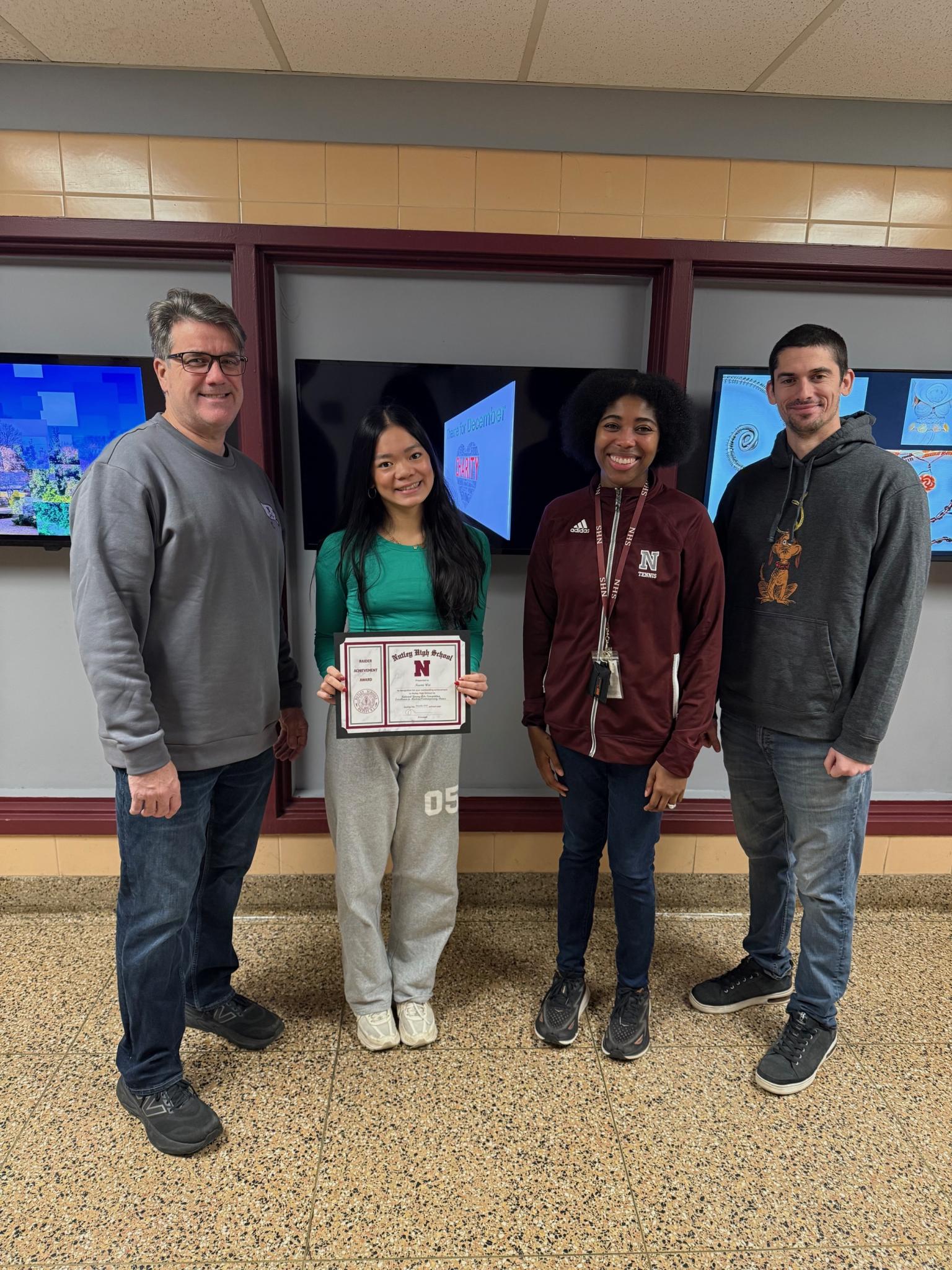 Congratulations to Naomi Wei who was selected as a winner in the National YoungArts competition, selected for excellence in modern/ contemporary dance and representing NHS.